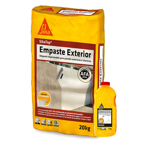 SikaTop Empaste es un mortero base impermeable de 2 componentes para pinturas en paredes interiores y especialmente en exteriores.
