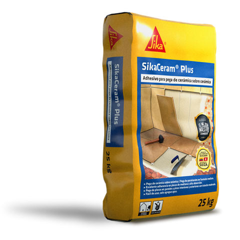 SikaCeram Plus es un mortero adhesivo elaborado con cemento, arenas de cuarzo y látex en polvo, que mezclado con agua forma una pasta de largo tiempo de manejabilidad, gran capacidad de retención de agua y mejor adherencia.