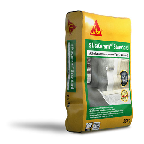 SikaCeram Standard es un mortero adhesivo formulado con cemento, arena bien gradada y aditivos especiales, para la pega de cerámica, azulejo, placas de arcilla o cemento y otros revestimientos de alta absorción.