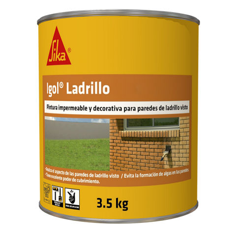 Igol Ladrillo es una pintura impermeable y decorativa para paredes de ladrillo visto, se puede aplicar puro o diluido en agua, con brocha o rodillo.